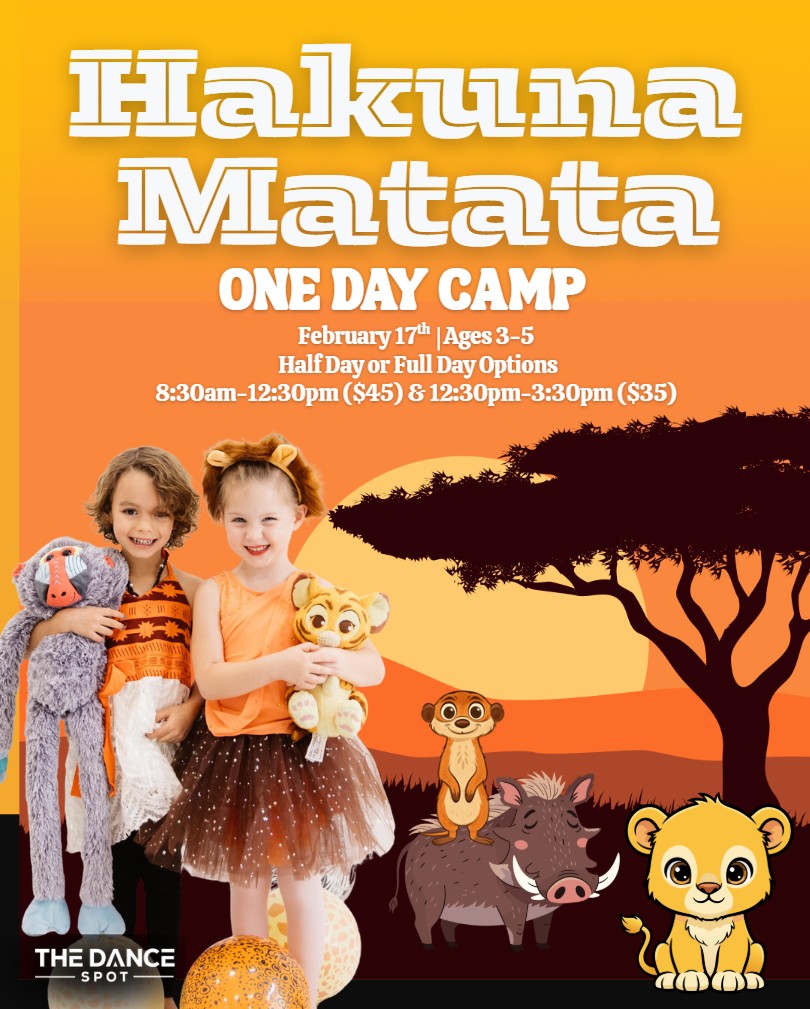 No worries, just fun! Our Hakuna Matata camp invites dancers ages 3–5 to explore movement, music, and imaginative play inspired by the joyful spirit of the savanna.
