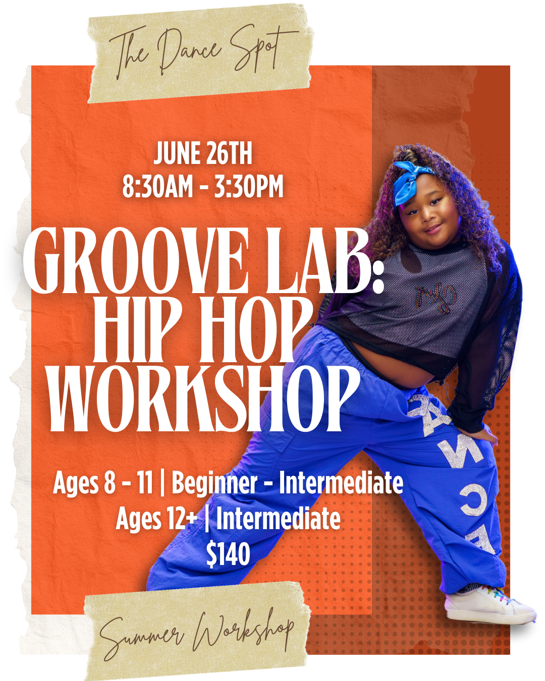 A high-energy hip hop workshop focused on musicality, groove, and personal style. Dancers will learn hip hop foundations such as popping and breakdancing, as well as foundational hip hop grooves and choreography while building confidence, versatility, and performance quality. Perfect for dancers looking to move with intention, power, and individuality.